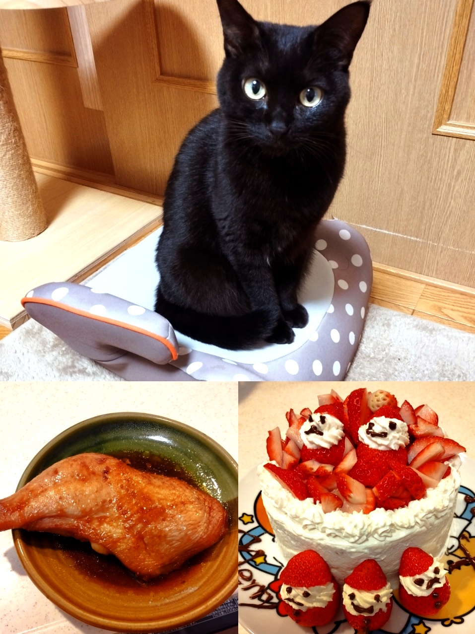 今年は節約クリスマスで鶏肉を前日から漬け込んでオーブンで焼いてみたら美味しくできました。ケーキは娘ちゃんが作ってくれました。